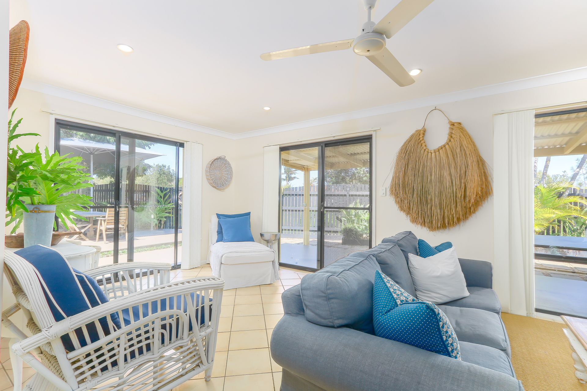 This light-filled, modern home boasts generous living areas perfect for families or groups seeking coastal relaxation. The central hub features a thoughtfully designed kitchen with sprawling benchtops that flows effortlessly into the dining space and welcoming lounge. Unwind in the separate sitting area with its cozy daybed, or wander through to the sheltered terrace – ideal for outdoor meals and socializing while enjoying views of the private grassed yard.