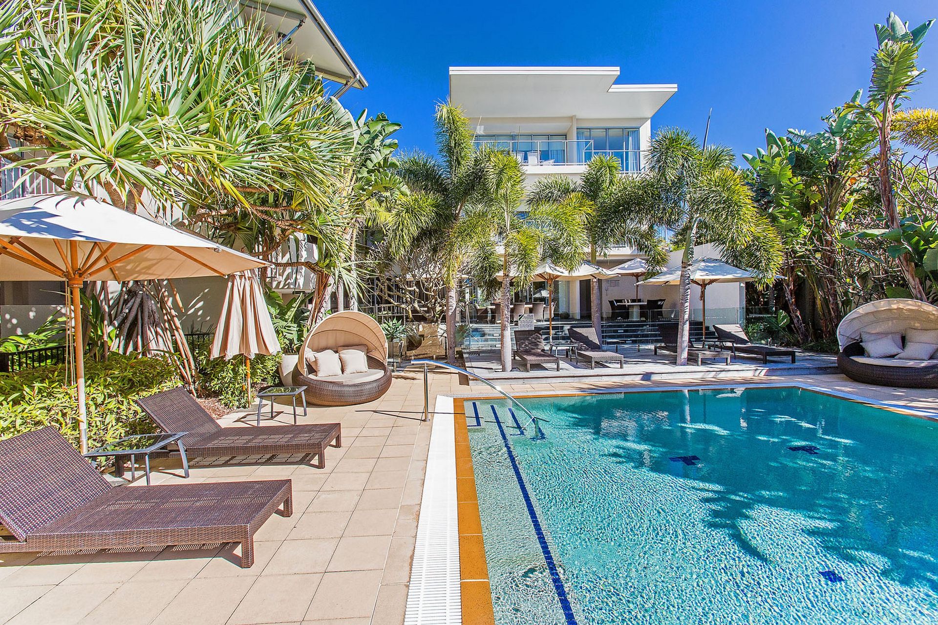 Modern 3-bedroom ground-floor apartment in Bale Resort Kingscliff overlooking central park, offering easy access to beaches and Salt Village.