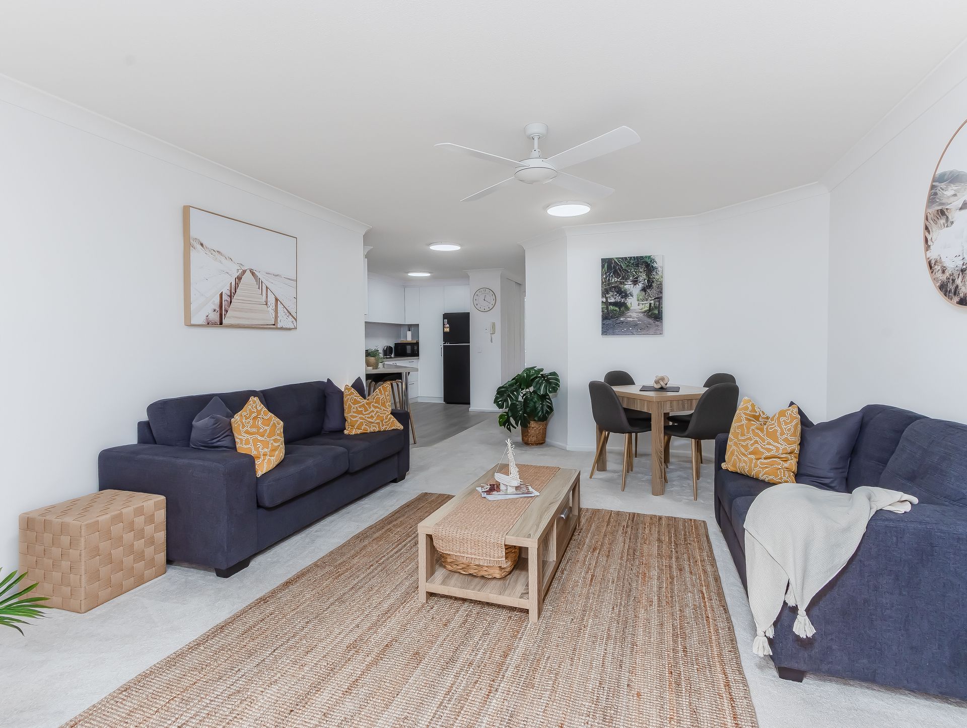 The apartment's flowing layout creates a relaxed holiday atmosphere, with generous living spaces that capture the laid-back coastal vibe of Kingscliff. Enjoy restful nights in two well-appointed bedrooms, each enhanced with ceiling fans to ensure comfort during warmer evenings. All linen is provided for your stay, while the bathroom features a welcoming bathtub – perfect for unwinding after a day exploring the beautiful Cabarita coastline.