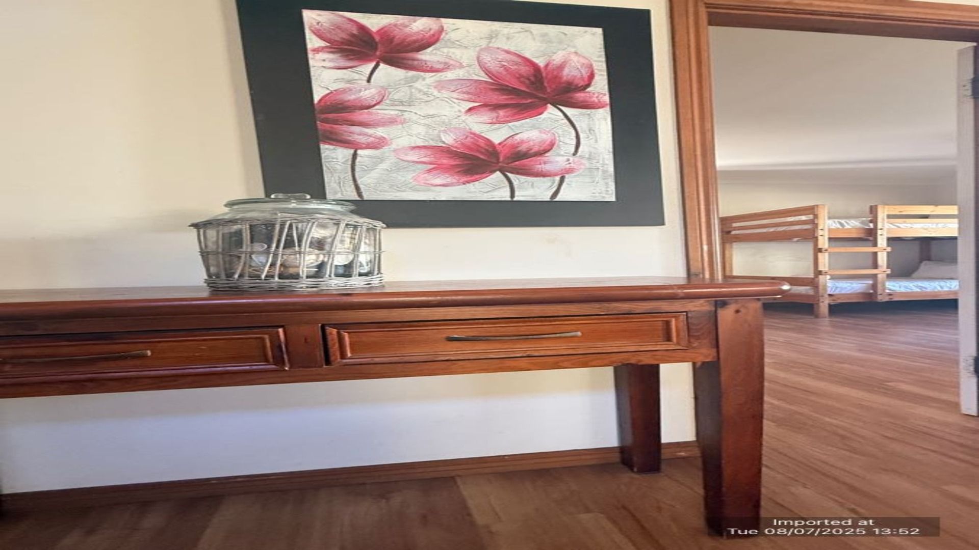 The lower level features a dedicated children's haven with 4 double bunks, while 2 queen bedrooms offer peaceful adult sanctuaries. Thoughtful design elements combined with contemporary comforts including air conditioning and a charming pot-belly stove ensure pleasant stays regardless of season.