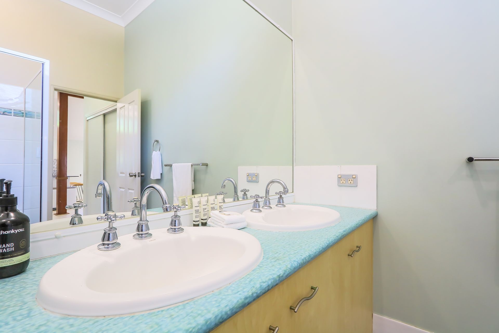 This accommodation comprises three thoughtfully appointed bedrooms. Both the master and second bedrooms are furnished with comfortable queen beds, while the third bedroom contains two single beds, providing quality sleeping arrangements for up to 6 guests.