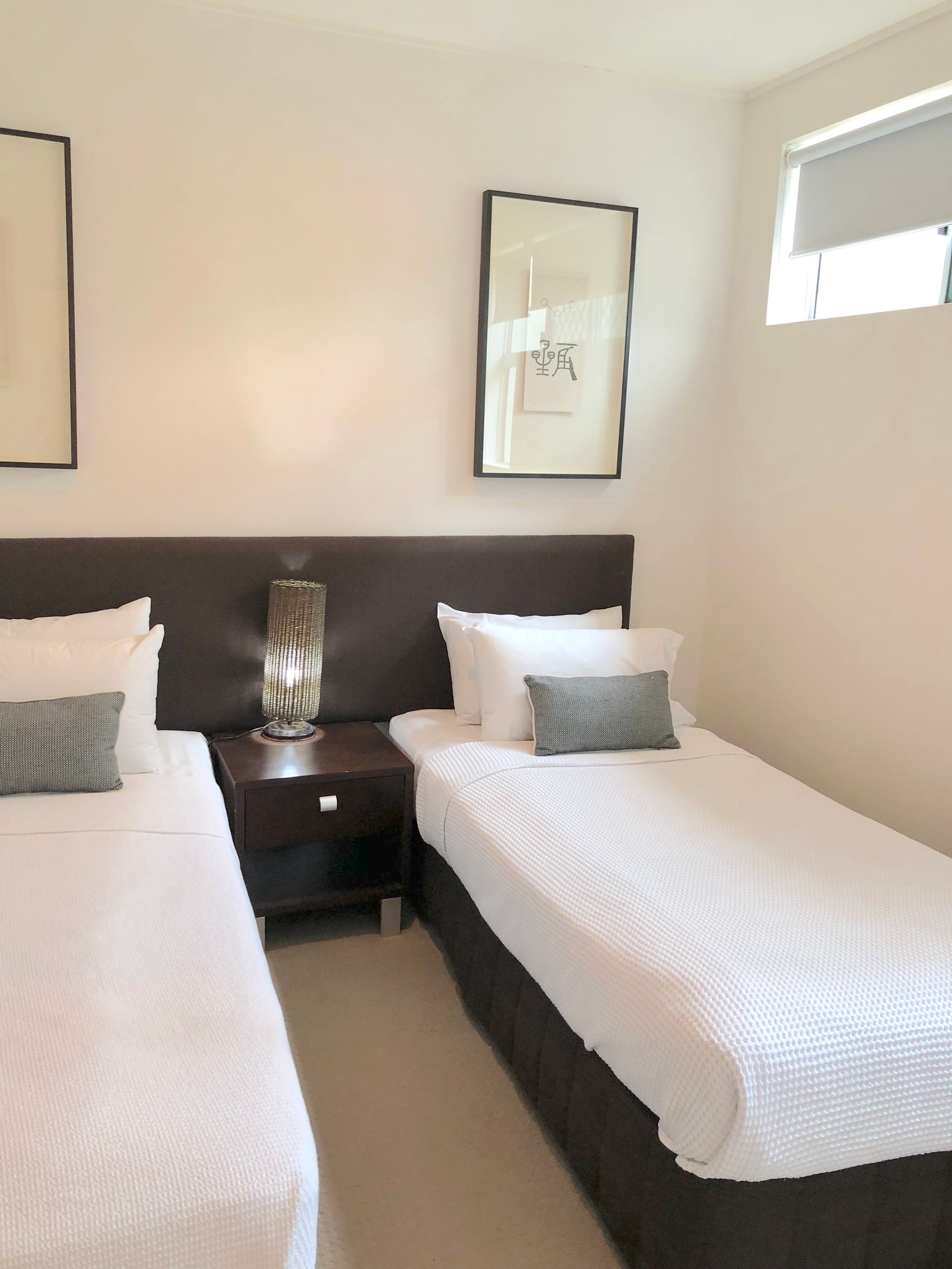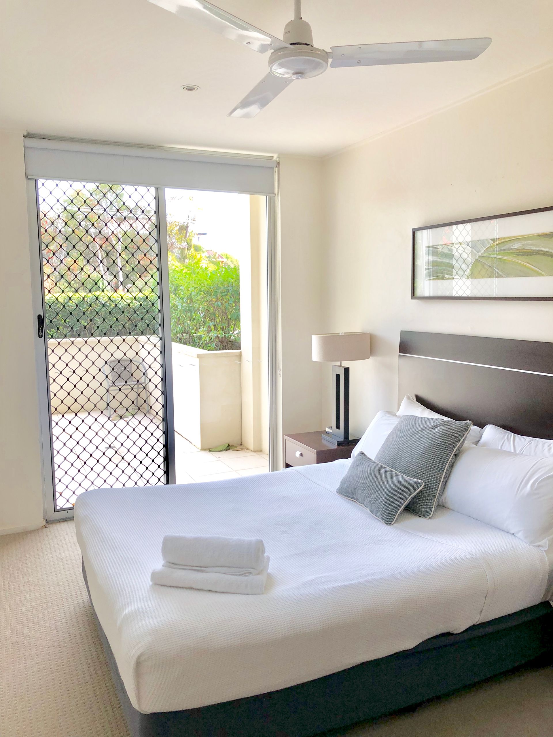The apartment comfortably hosts up to 4 guests with a thoughtfully designed floorplan featuring a generous master bedroom with private ensuite, complemented by a twin bedroom and central bathroom. The light-filled, open-plan living space extends seamlessly to a charming sundeck with stylish plantation shutters – an ideal spot to savor your morning coffee or enjoy the refreshing coastal breeze.