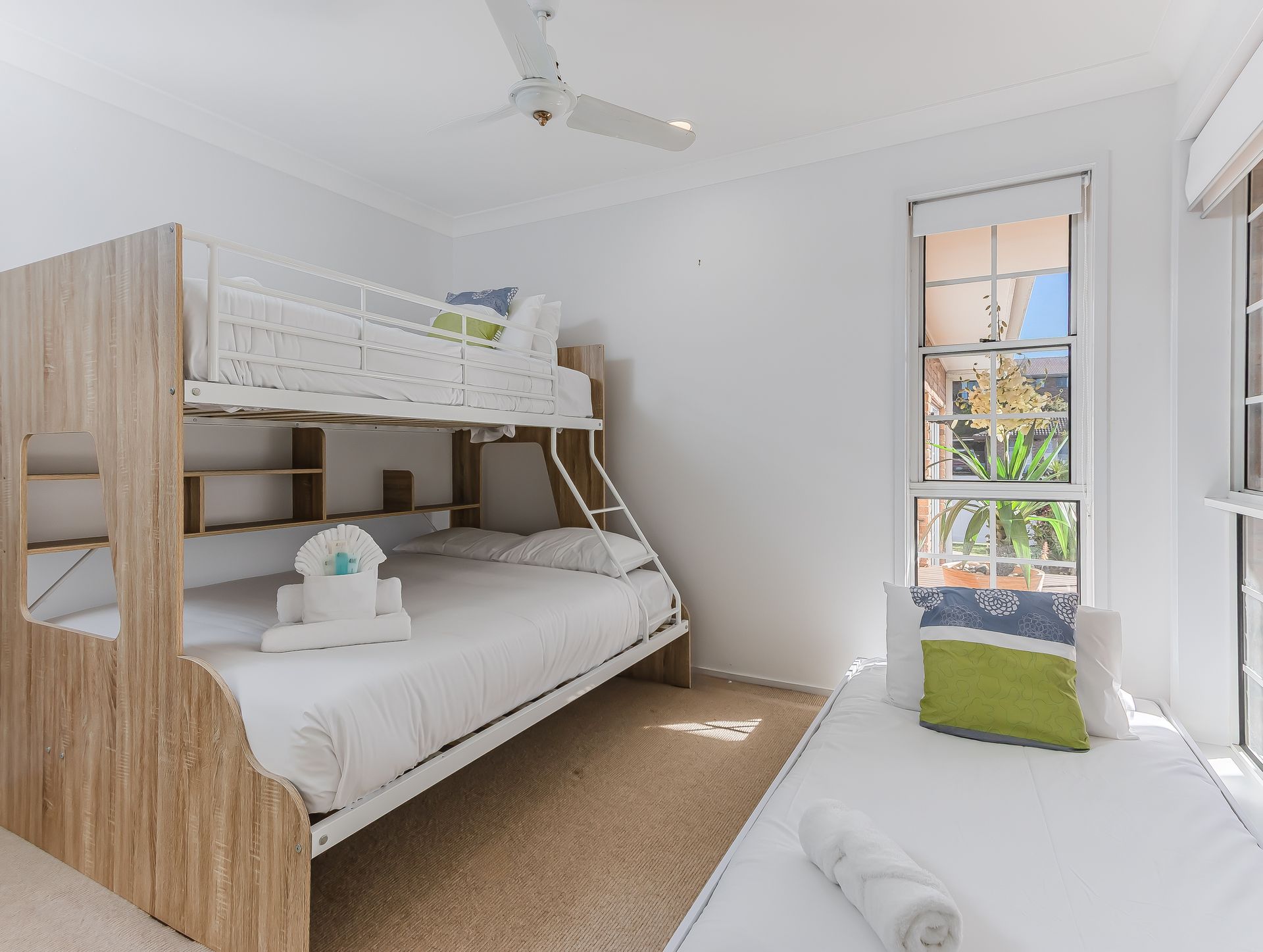 The contemporary kitchen comes fully appointed with an induction cooktop, oven, microwave, fridge/freezer and all necessary appliances. The flowing open-plan design features 2 spacious living zones with Smart TVs, delivering ample room for family relaxation and entertainment.